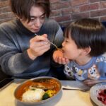 外での遊びが足らず、帰ってきたパパを連れて夜の散歩へ行っていました😂
