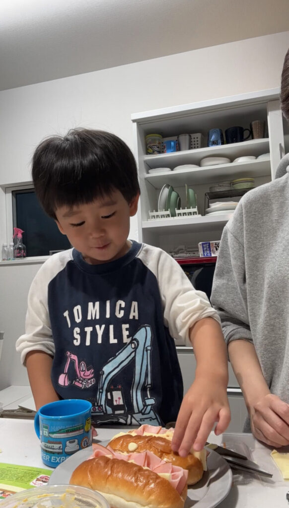 息子はハムチーズが大好きなようで、卵はパパとママどうぞ!とくれました!笑
