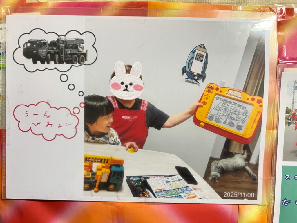今回もお義父さんがフスマ写真を用意してくれていましたが、肝心の息子は久しぶりの佐渡でおもちゃに夢中😂