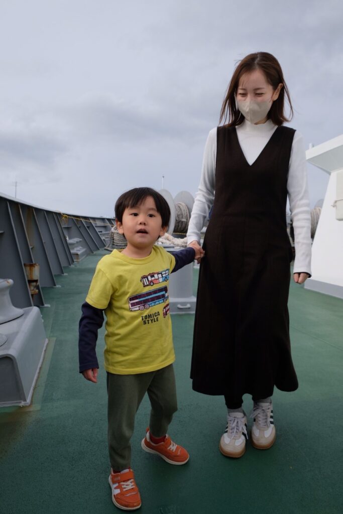 まだまだここにいたい…という気持ちもあったのか降りてからも船を見たり、なかなか車に乗ろうとしない息子。