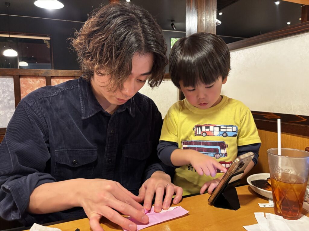 ショート動画を見ながら真剣に折ってくれていました🎵