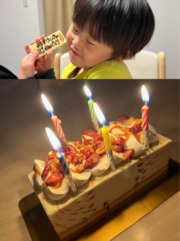 ロウソクのふぅ〜と、チョコプレートを食べるのは息子担当でした🤣笑