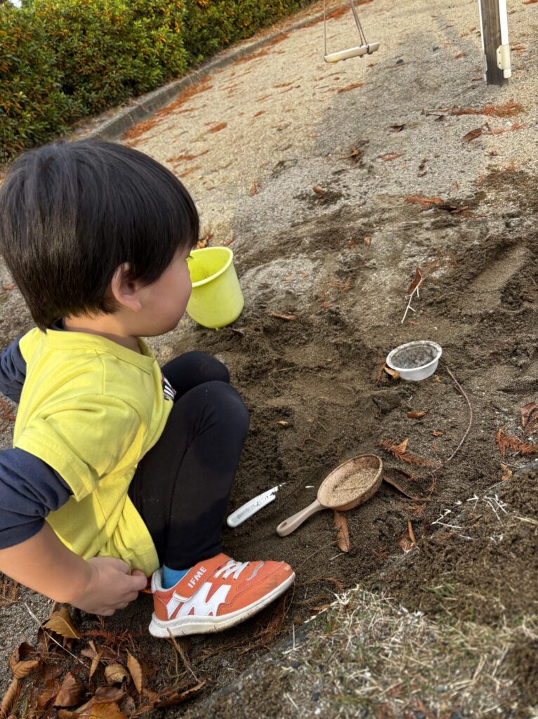 砂遊びでは、パンケーキとプリンと焼肉を作ってくれました🤭笑