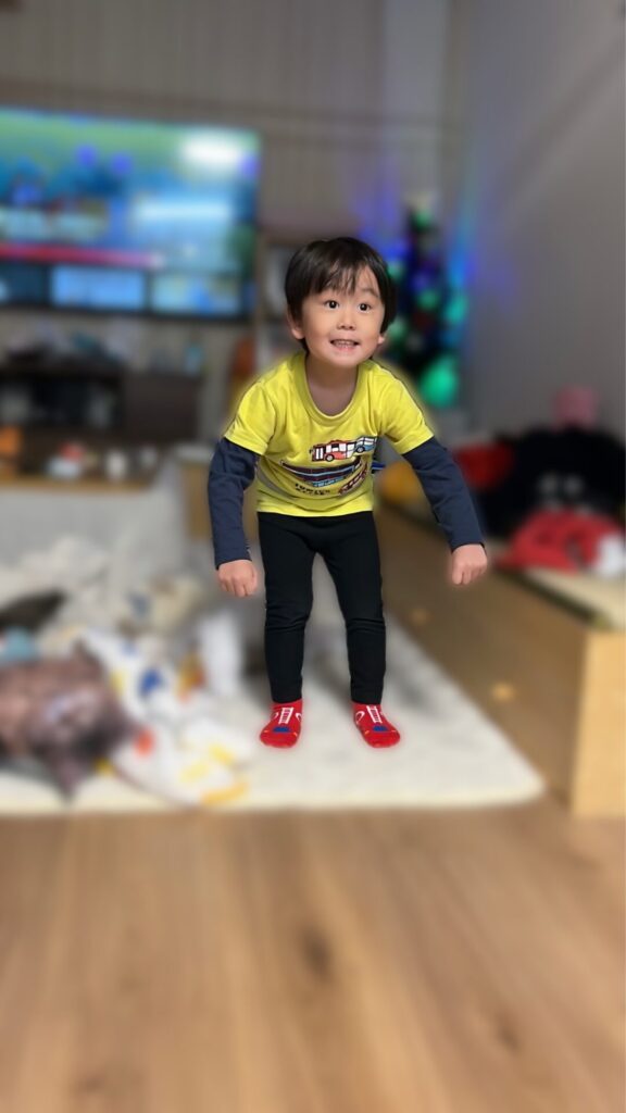 僕たちは「るかはバナナくんたいそうパートか!」と思っていたら、今度はチェケマッチョを流す息子。