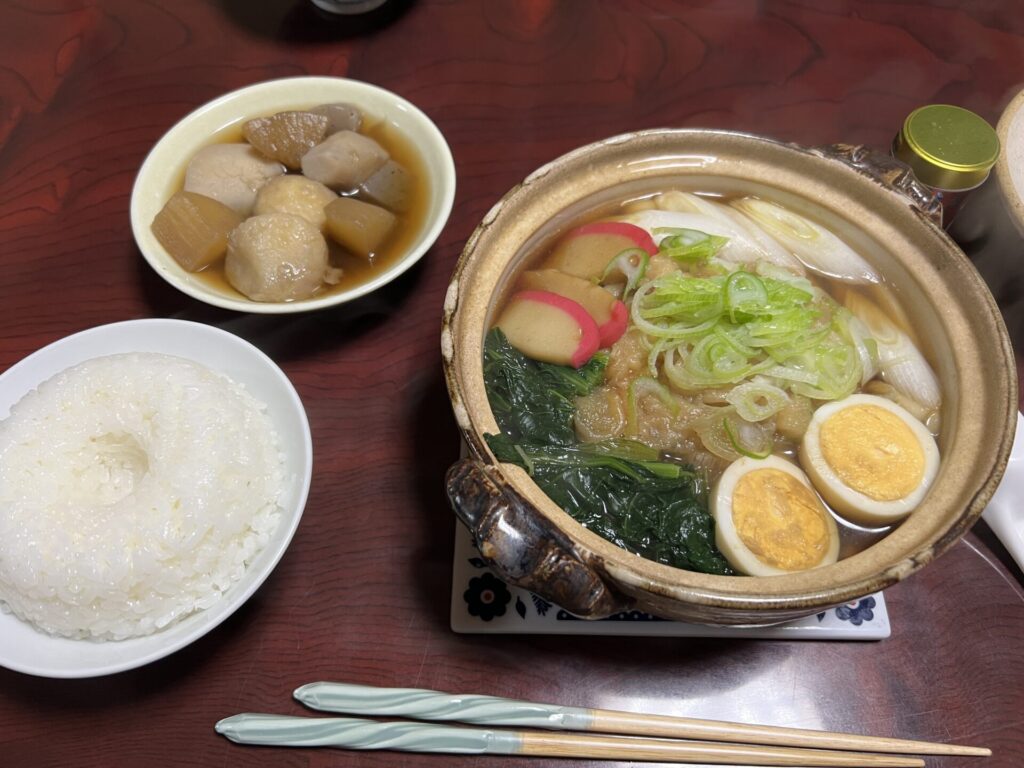 夜ごはんはお義父さんお手製の鍋焼きうどん!