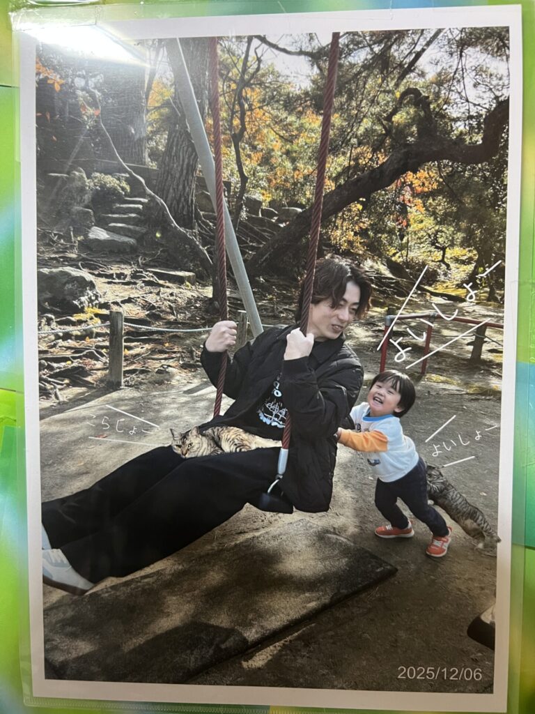 息子を押している姿がかわいい😍