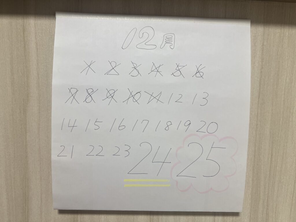 まだ言葉だけでは理解しきれないと思い、妻が手作りカレンダーを用意してプレゼントが来る日を分かりやすくしてくれました🙌