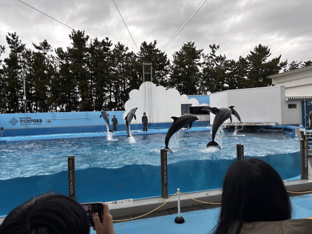 日曜日でしたが、開館すぐ行ったこともあってイルカショーの席もど真ん中で見ることができました!