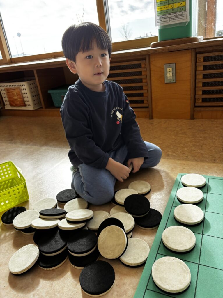 オセロで遊んでいても遠くに見つけた絵本に視線が🫣