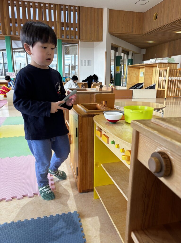 はらぺこあおむしの絵本を5回以上読み…おままごとコーナーへ♪