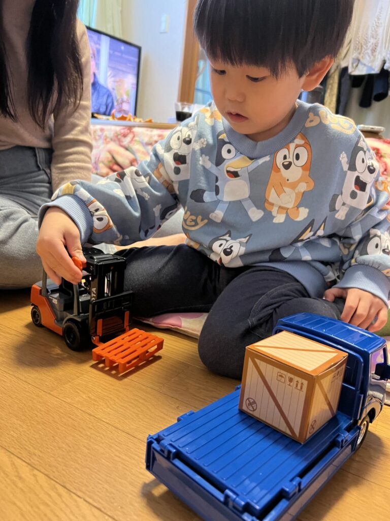 息子がリクエストしていた“フォークリフト”無我夢中で遊んでいました🥹