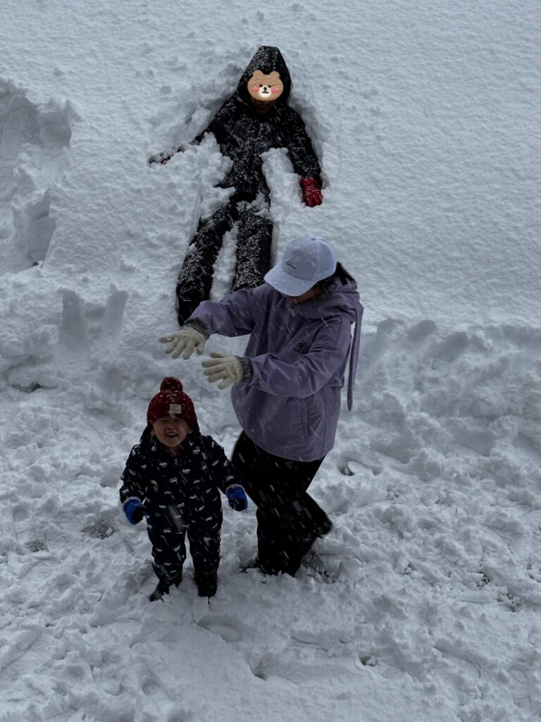 大好きなお兄ちゃんお姉ちゃんと雪遊びを楽しんでいました♪
