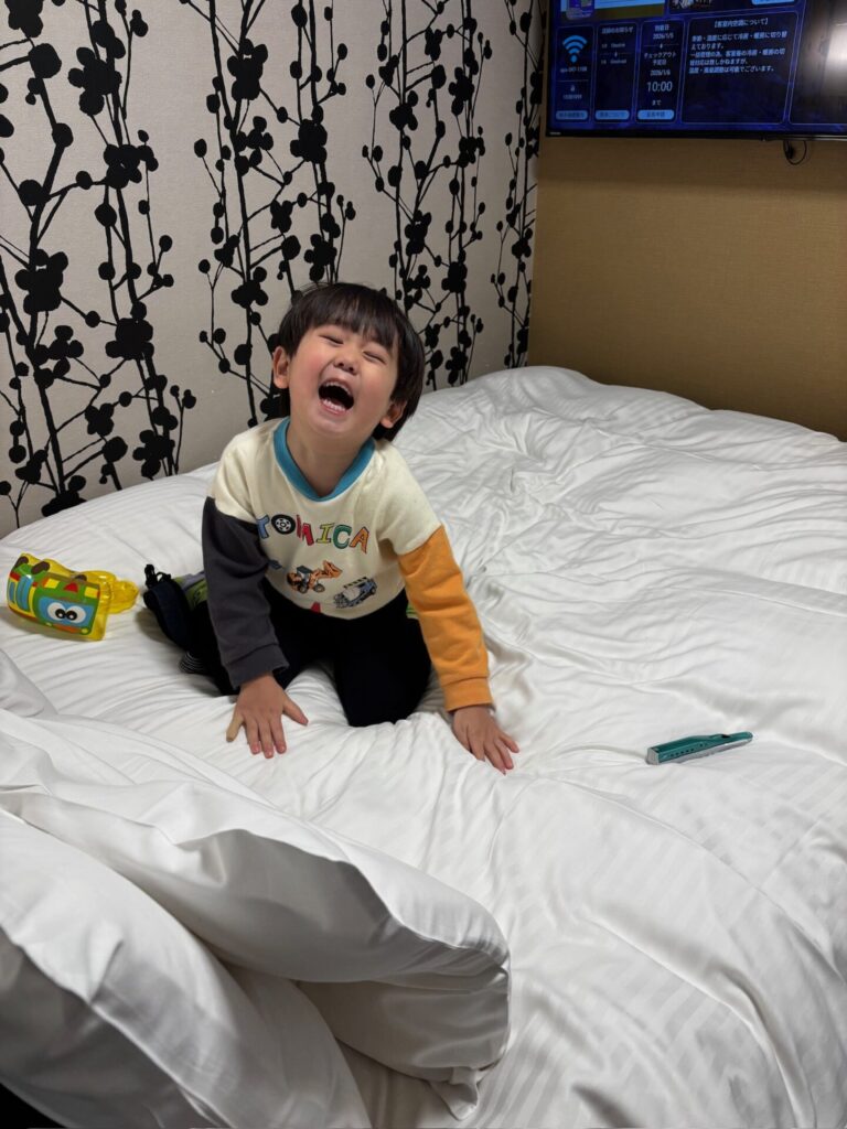 ホテルについてからは大興奮で、ベッドにダイブしたり叫んだりしていました😂