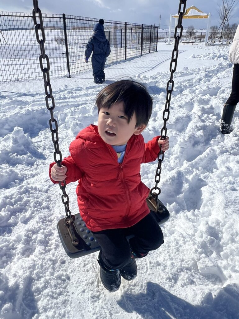 ブランコに乗って押してあげたら「おさないで!」と怒られました😂