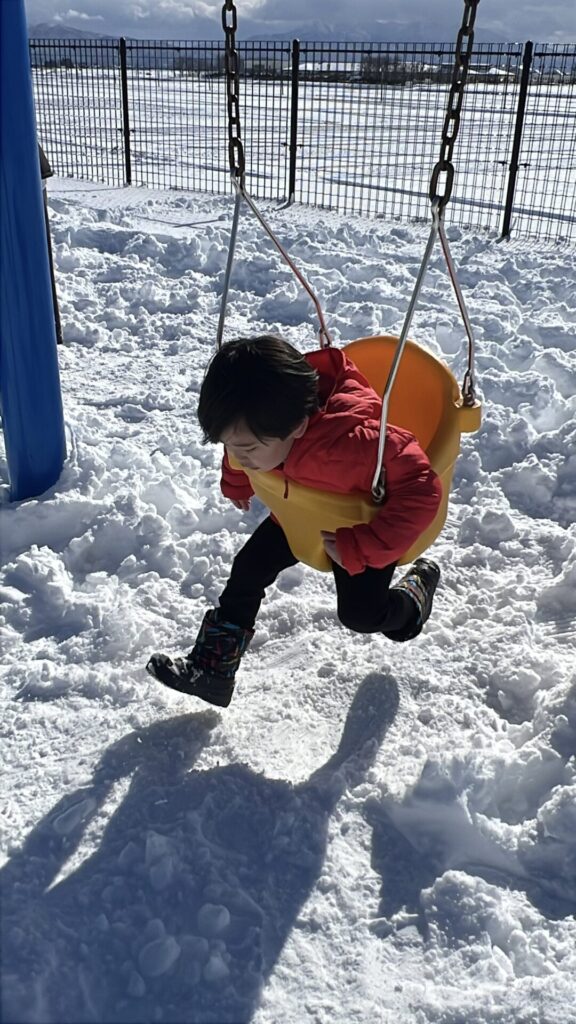 前日に雪がたくさん降ったので、いい感じに雪が積もっていて息子も大興奮♪