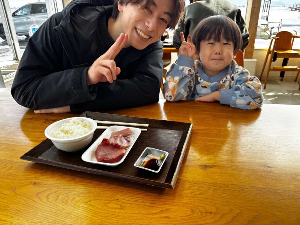 道の駅あがので寒ブリ解体ショーと雪遊び!