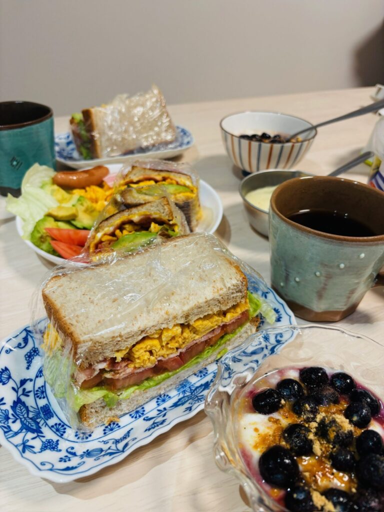 栄養バランスなどを考えてパンは全粒粉にして、オーソドックスのサンドウィッチと、インスタで出てきたホットサンドを作ることに💪