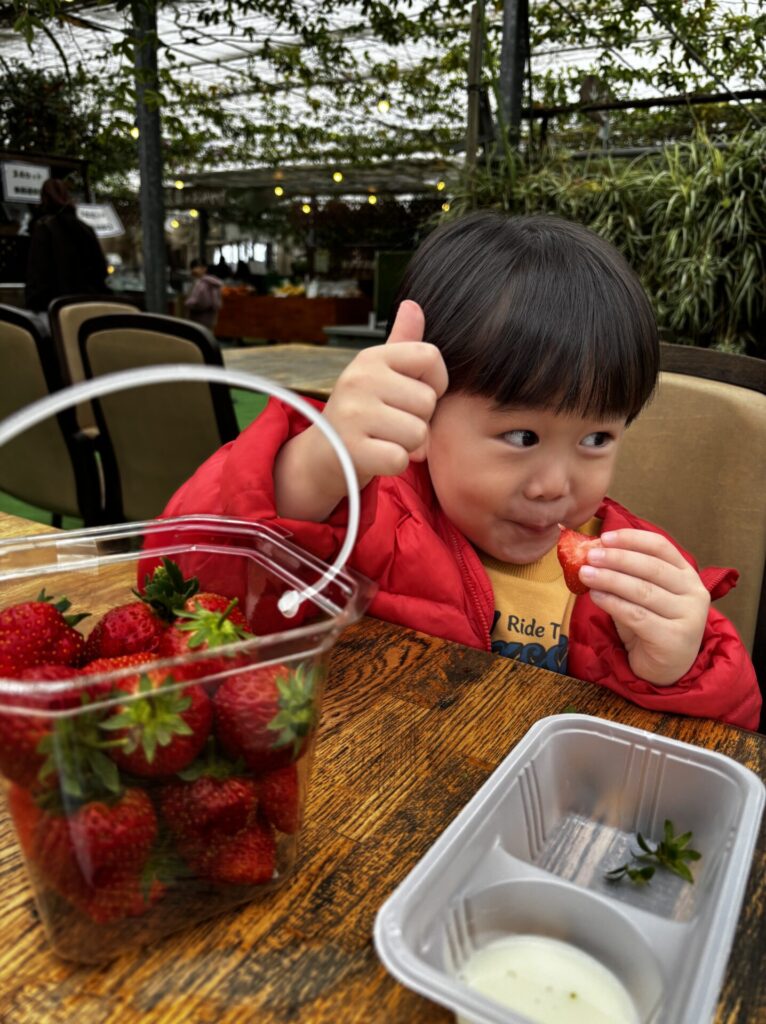 大好きなイチゴが待っているからか、いつもより早く起きて準備もスムーズにできた息子でした✨