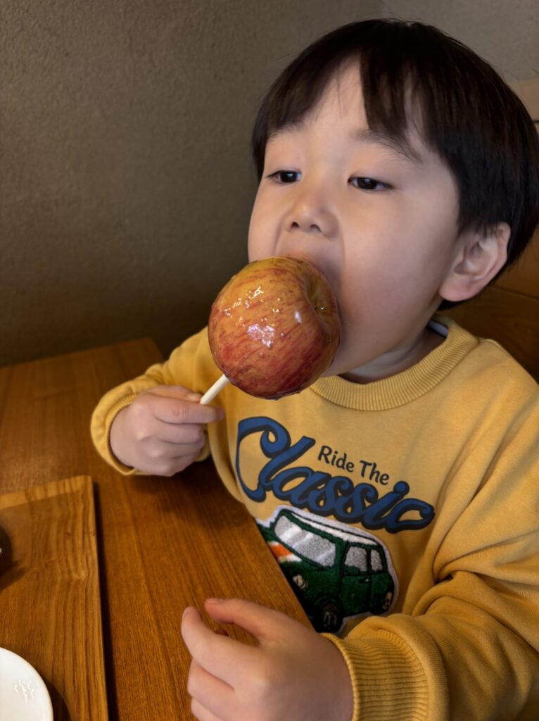 「カットしたくない!そのままがいい!」とカットを許さなかったりんご飴🍎