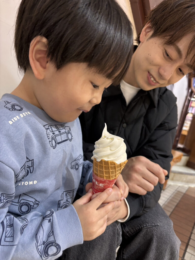 「おっきいアイスがいい!」とソフトクリームを選んでいました🤭