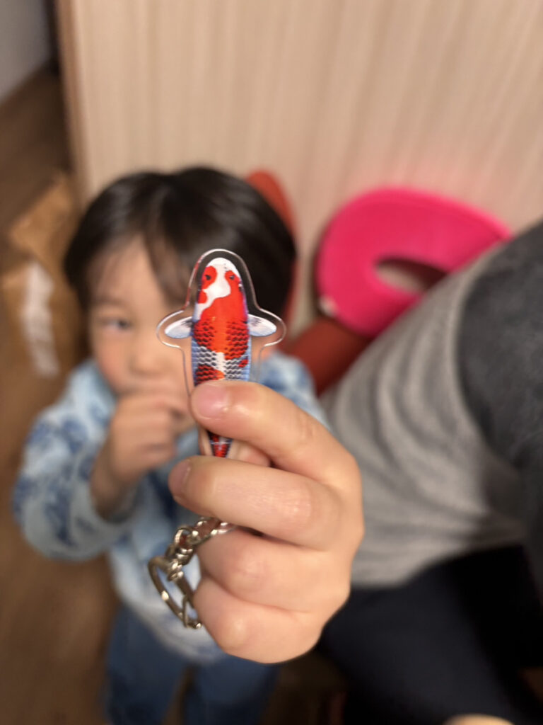 近くにあった錦鯉のストラップガチャを見つけ「やりたい!」と。