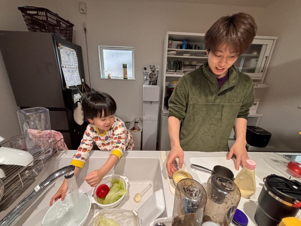 息子には野菜を洗ってもらいました☺️