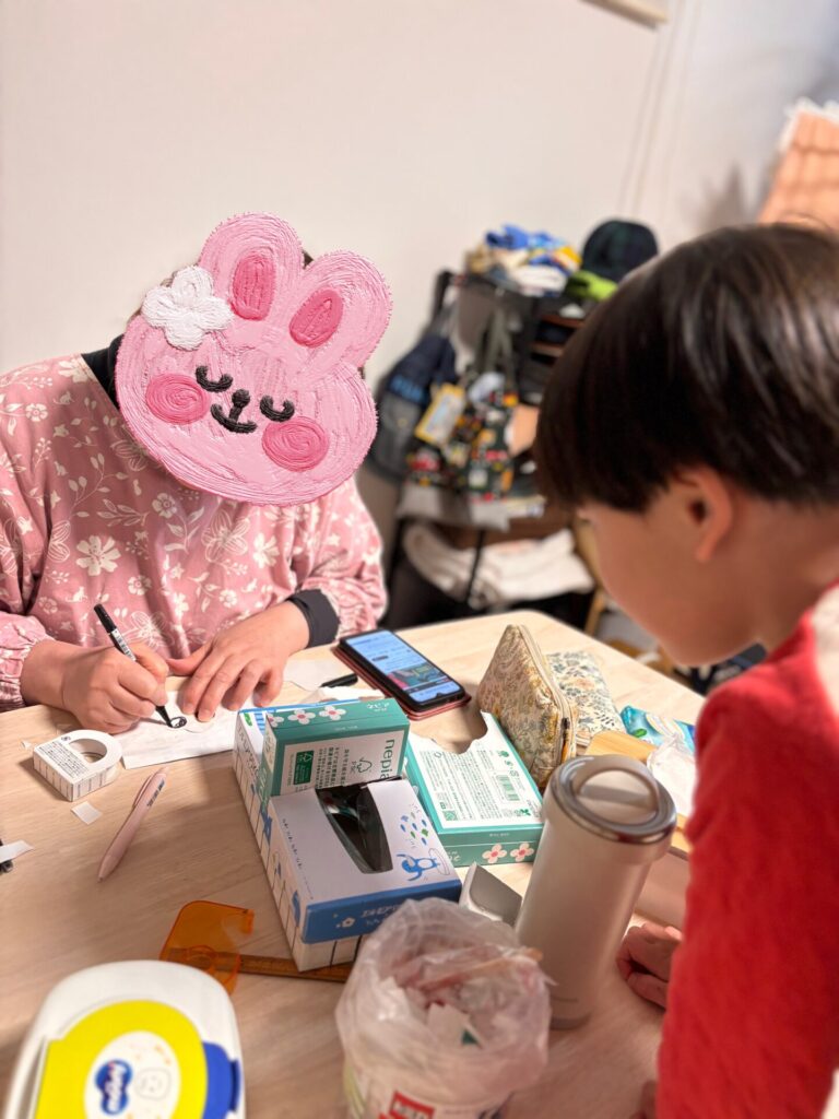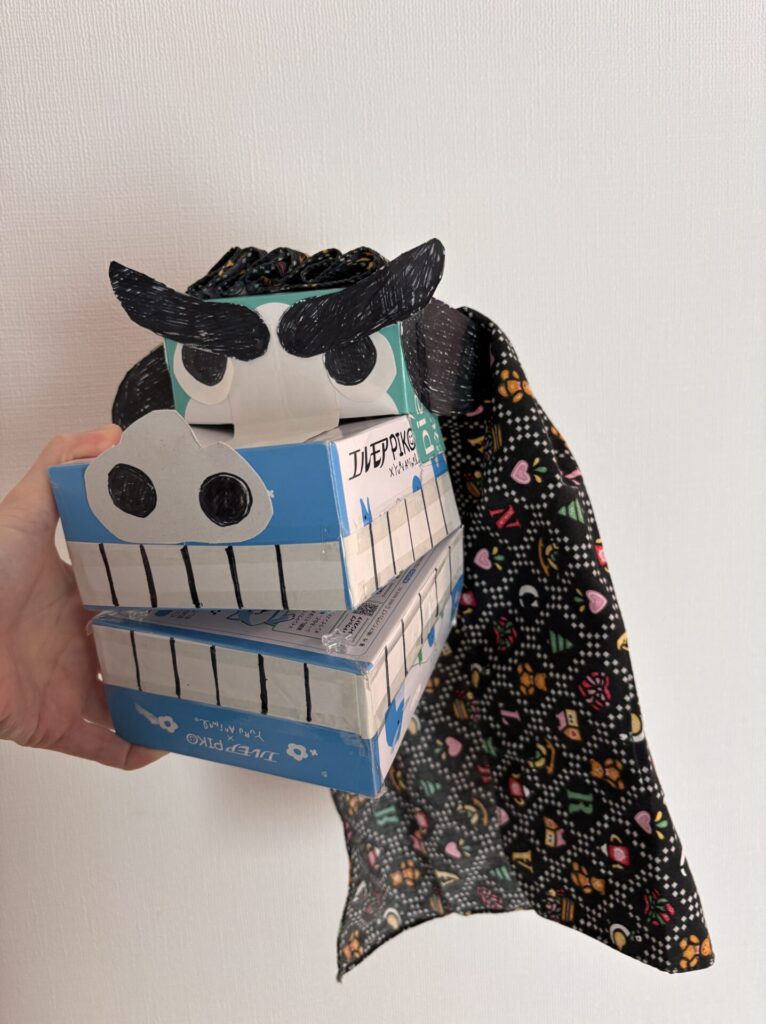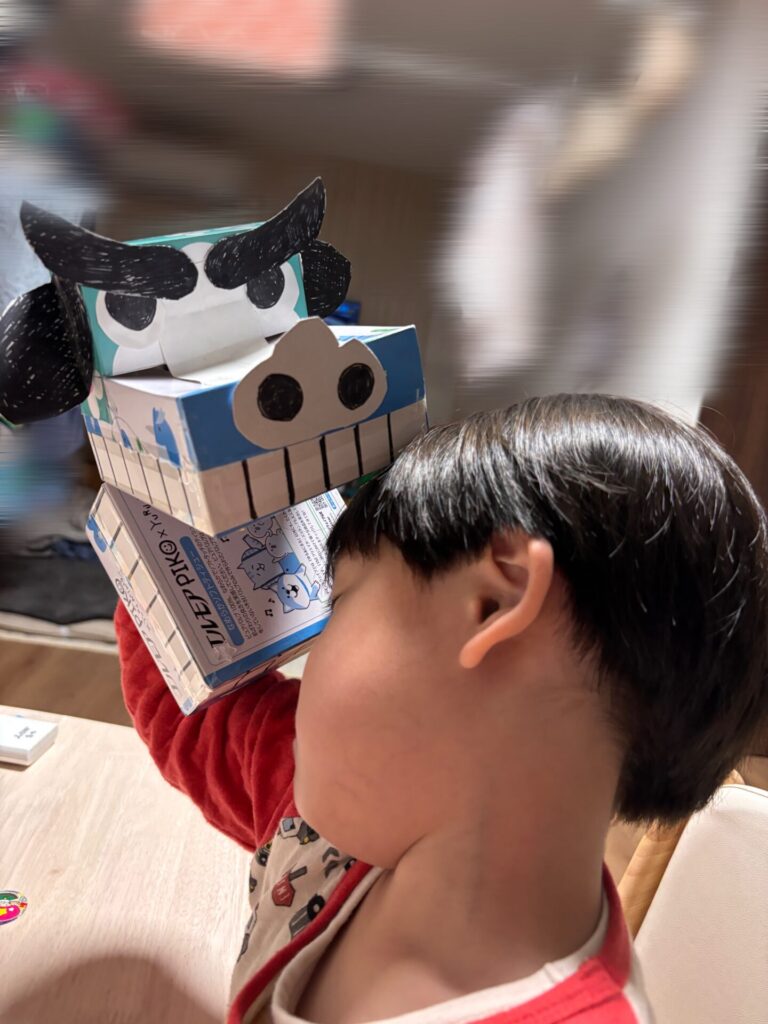 ネットで検索しながら、箱ティッシュで黙々と工作✨