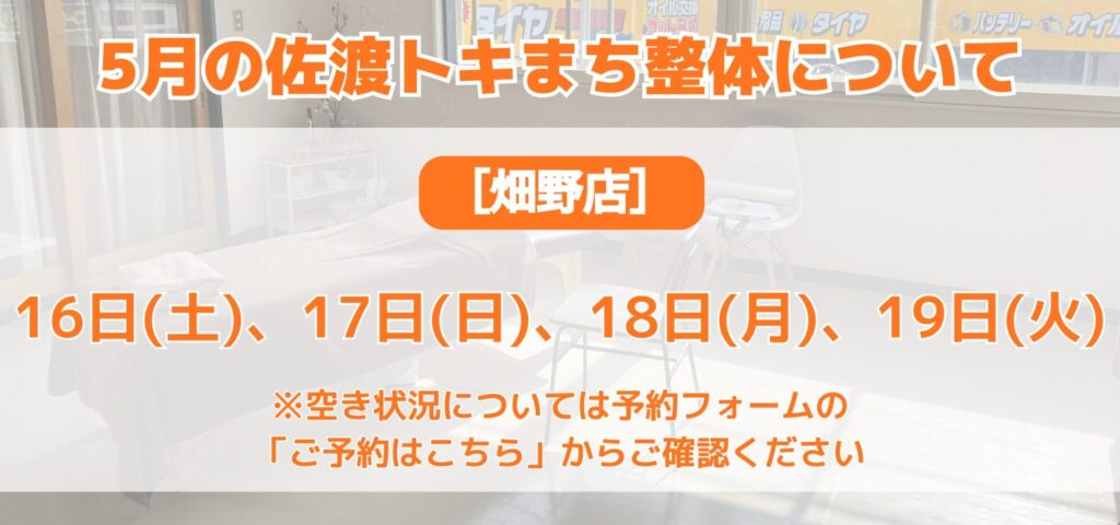 当店は畑野の店舗をお借りしてトキまち整体の営業を行っています。