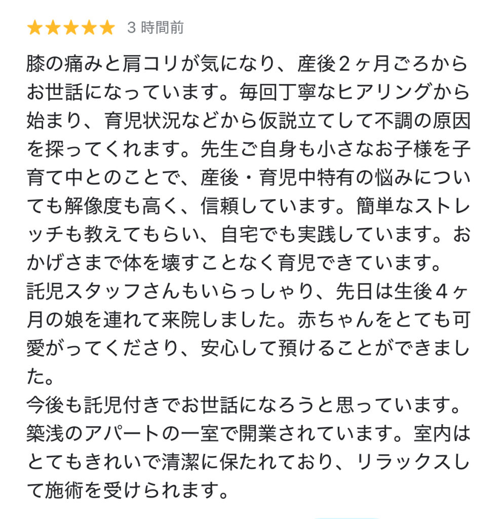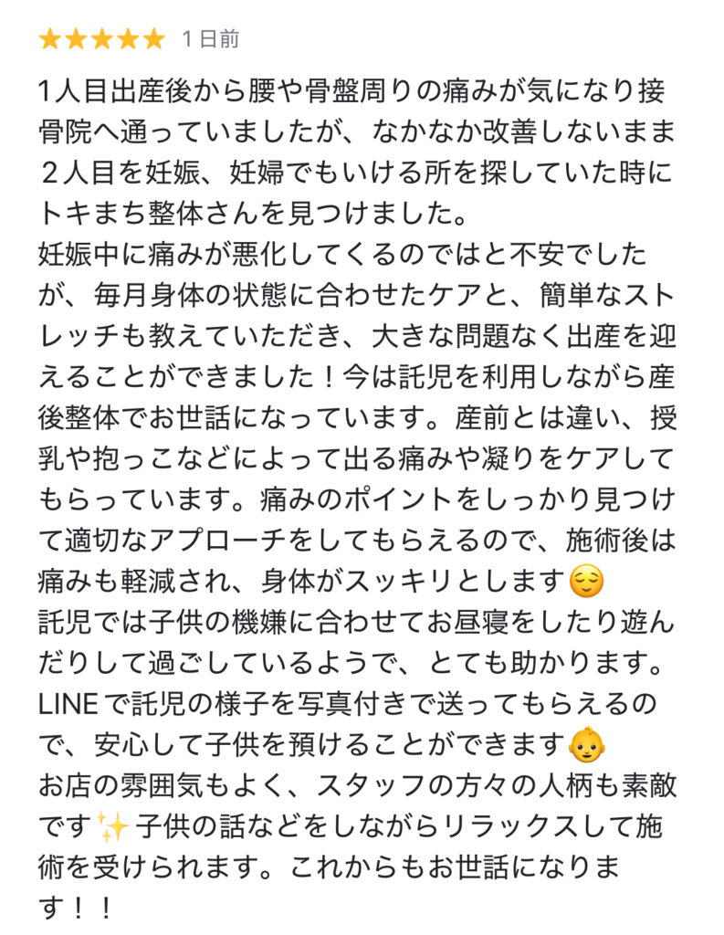 産後整体を考えている方は、ぜひ来店された方の口コミご覧ください。